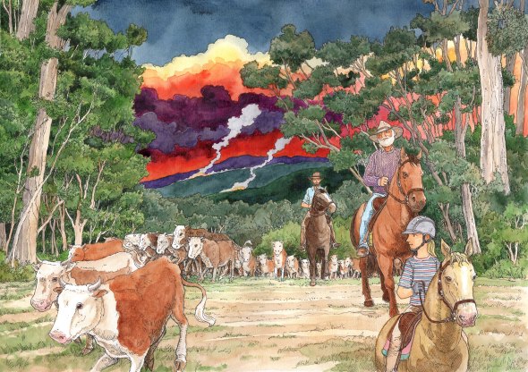Artwork: Book cover MY PA, THE BUSHFIRE AND ME by Tim Ide
