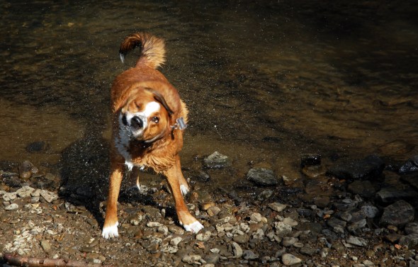 When it comes to having a fluffy coat, it’s a good idea to shaking off any water, so as not to get cold. Dogs are the best shakers! I love the sound of their lips and soggy ears slapping their head as they do it.