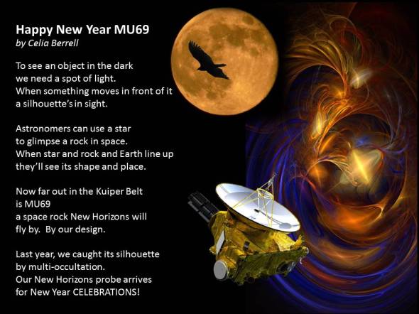 On the eighth day of Christmas (1st January), New Horizons (the space probe that took photos of dwarf planet Pluto back in July 2015) will be 6.6 billion kilometres from Earth, travelling at 14 kilometres per second, flying past a rock about 37 kilometres wide called 2014 MU69 (nick-named Ultima Thule) in the solar system’s Kuiper Belt. If it doesn’t bump into anything on the way, we will receive images from its cameras just over six hours after they are taken. This is an incredible technological adventure with cosmologically amazing consequences. What an exciting way to start the New Year!