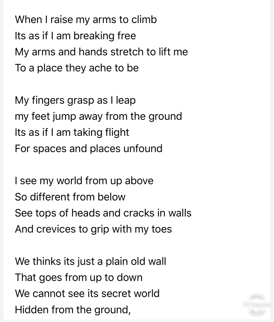 “When I raise my arms to climb” by Rhonda Cotsell