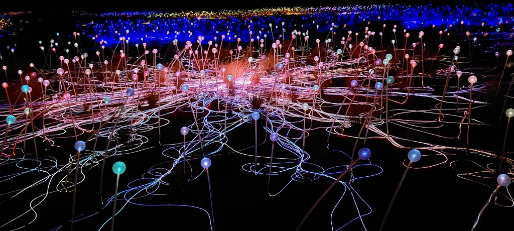 Beyond the light and colours bright, the desert oaks unseen and quiet.