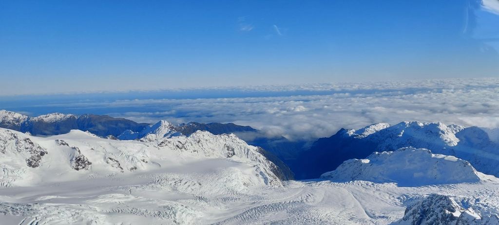 New Zealand mountains seen from helicopter. Photo by Ginette Pestana