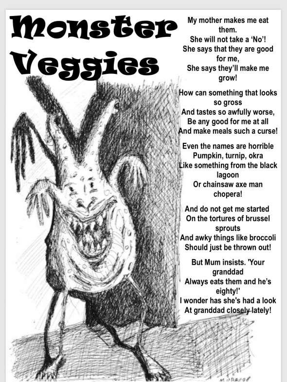 Activity – Make up recipes with vegetables as the main ingredients – they must be delicious enough that YOU would want to eat them! If there are any vegetarians in the class, ask them to be a consultative panel and to judge the result of the class cooking attempts to make veggies into taste tempting foods!