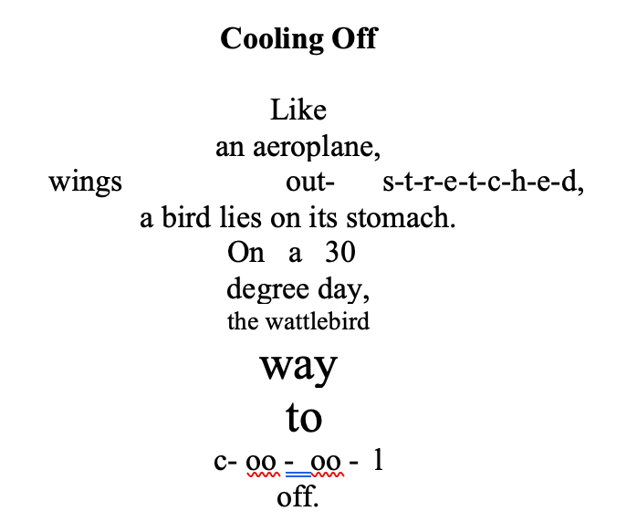 To give you the idea of how to go about writing a concrete poem, here is one about a bird.
