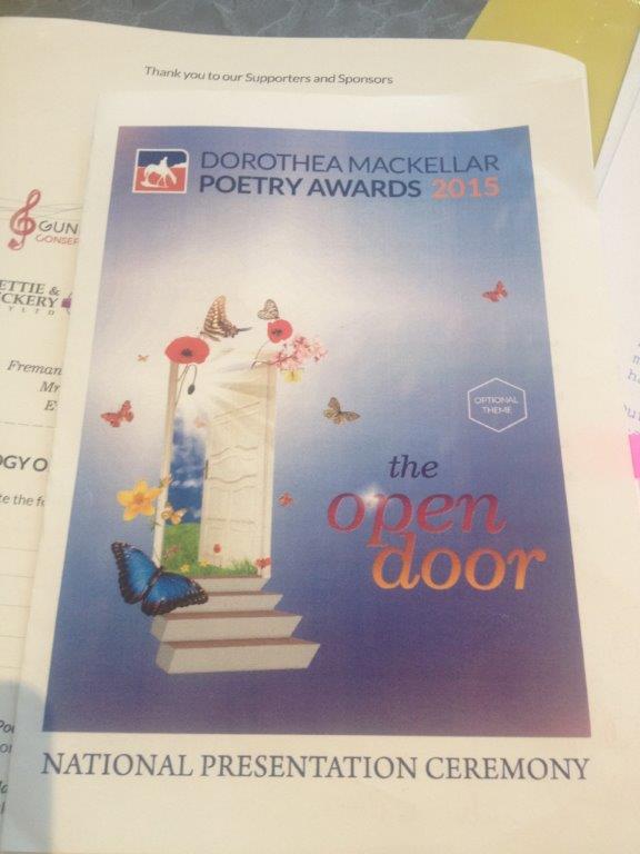 IMG_1188Last week was a very exciting and rewarding week – the culmination of four months reading, re-reading, agonising over and judging 6,000 poems received from primary school students Australia-wide. As this was my second year in the role, the mechanics and rules were easier but the volume of poems had increased which made the decision-making even more challenging. Following the decisions, there were reports to write and send off, followed by the final exciting part, the Dorothea Mackellar Awards National Presentation Ceremony held in Gunnedah, NSW on Friday 4th September.